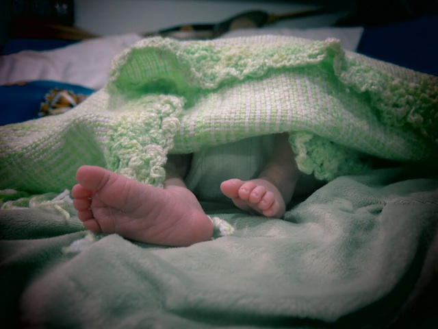 When our little boy came out, he did not even cry… Just a little wimp, kind of saying “Hello, Im here now…”