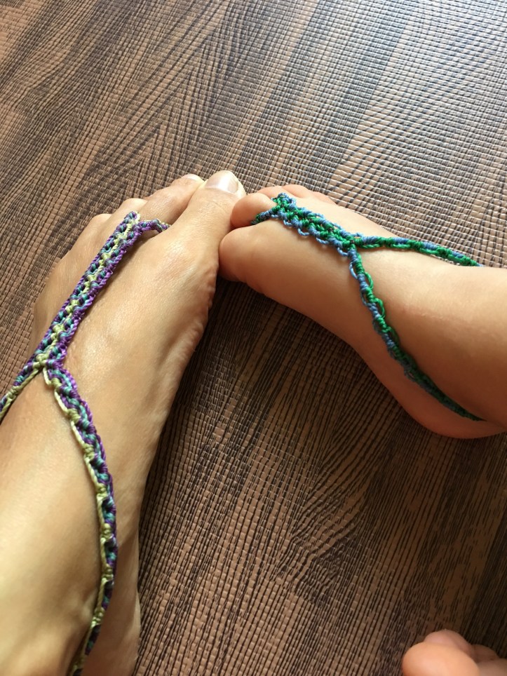 I had bought two little gifts for him in Tenerife, a drawing book with stickers and a glass-jar with two little blue owls on it and a straw. He also been asking me to make him a foot-bracelet like mami has…:) so i made him one…