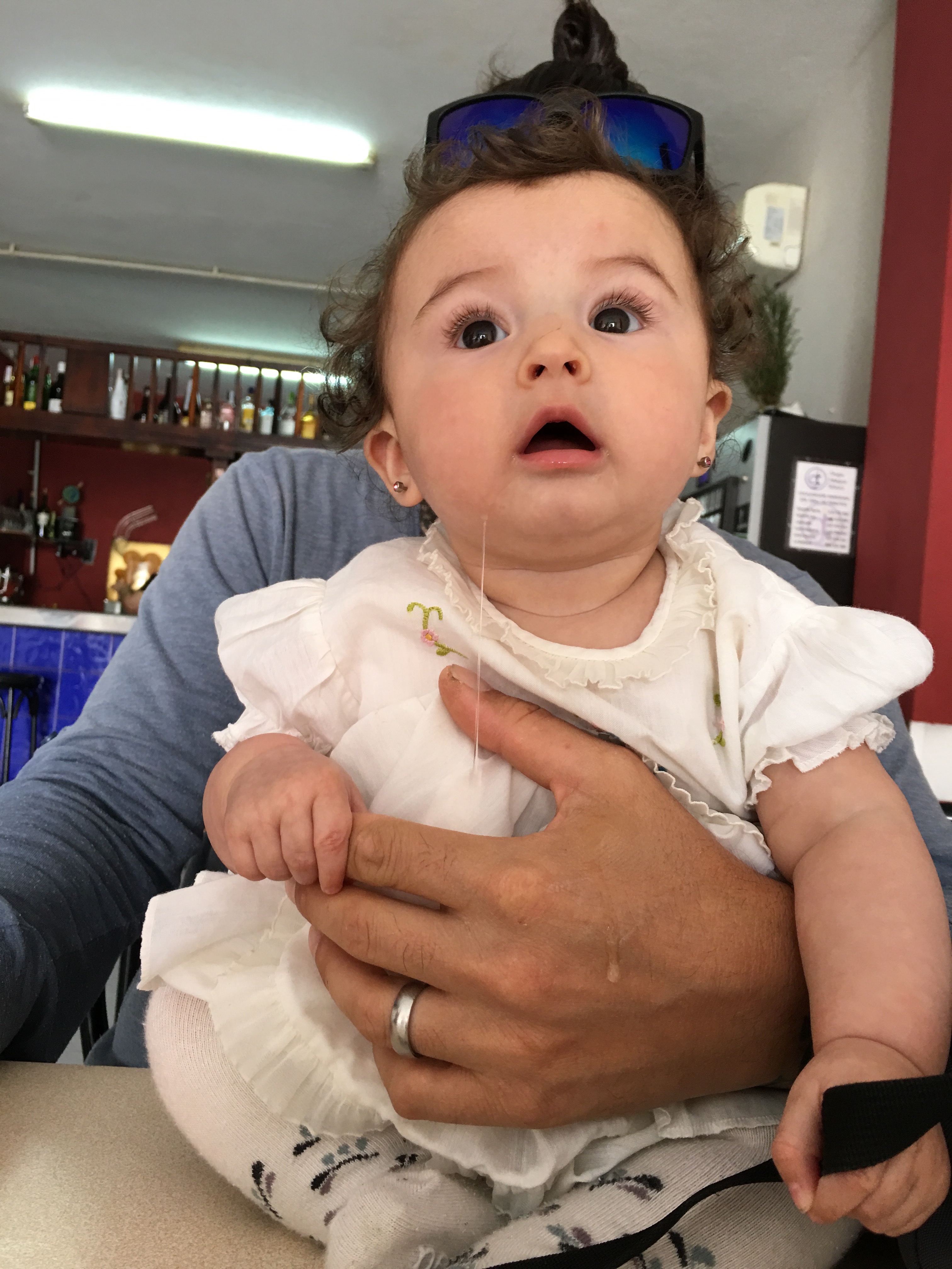We spend the day playing outside, kicking his little ball around, going to the beach, saying “hello” to everyone. Eat at a little restaurant, where he had a natural strawberry smoothie.