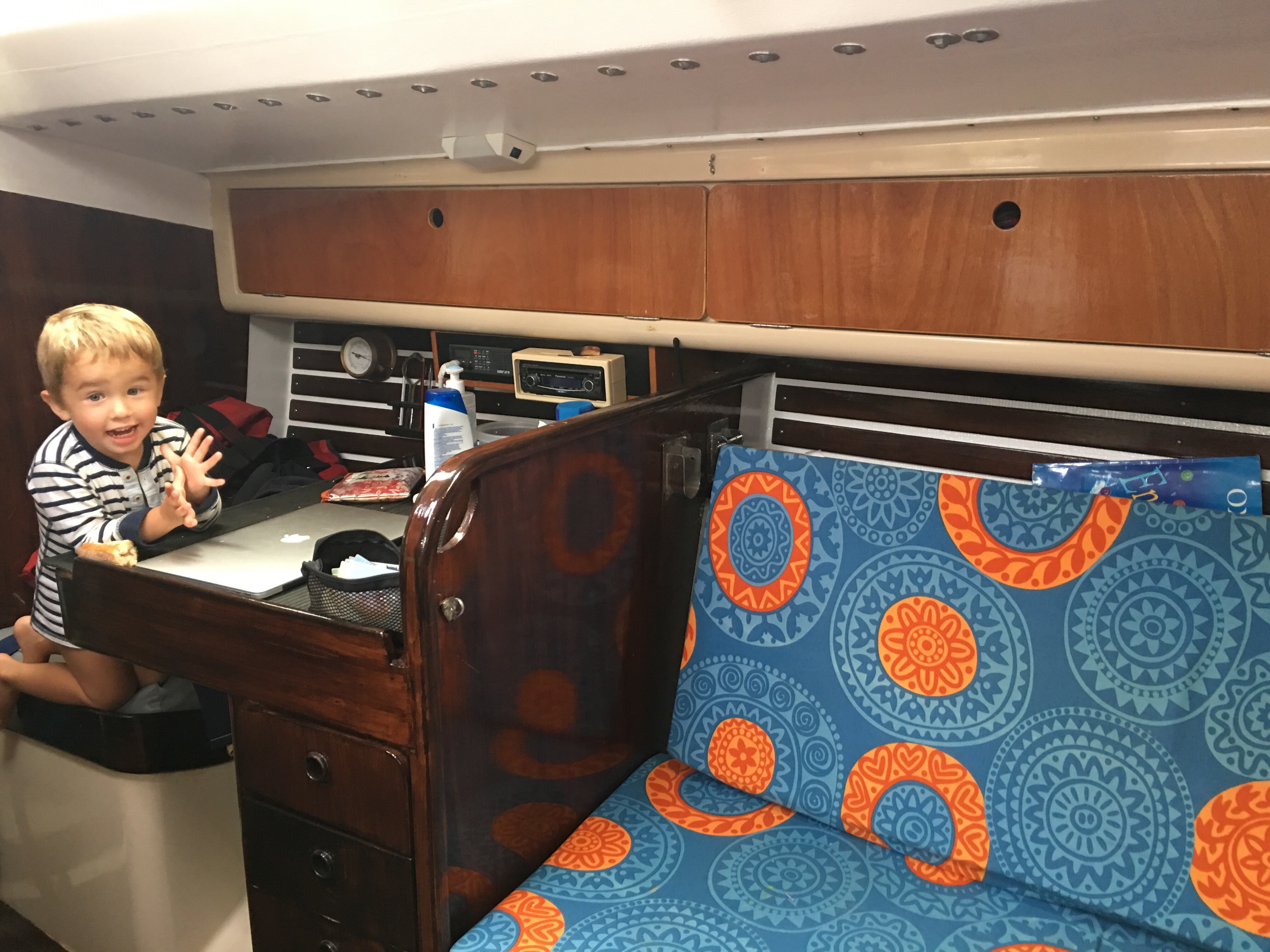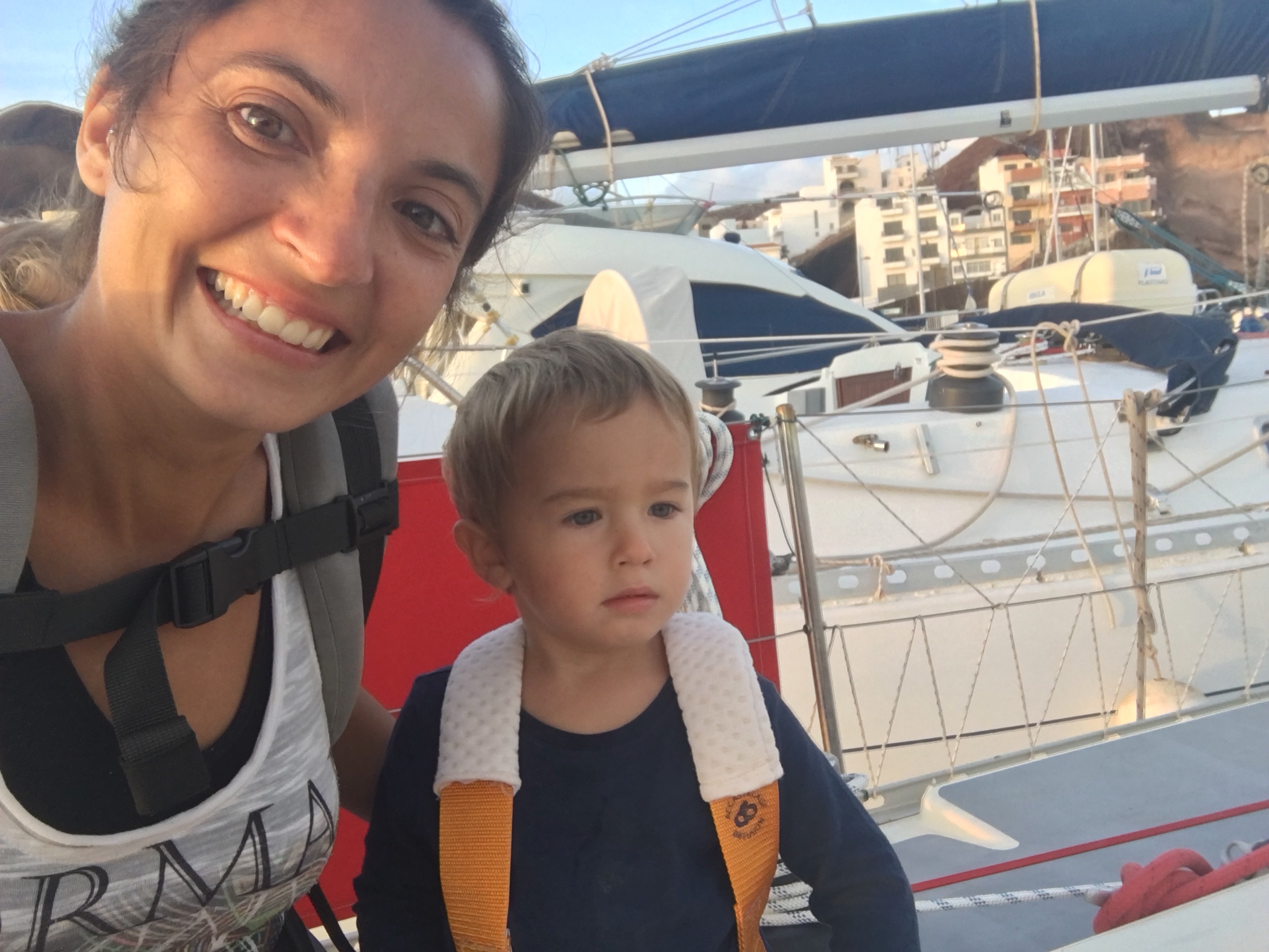 We left at sunset and Kai was super excited! We had explained to him that the boat was going to move much more now and if he wanted to be outside he needed to use his harness at all time! He got it, my big little boy and was happy to put it on and sit outside clipped in an all.