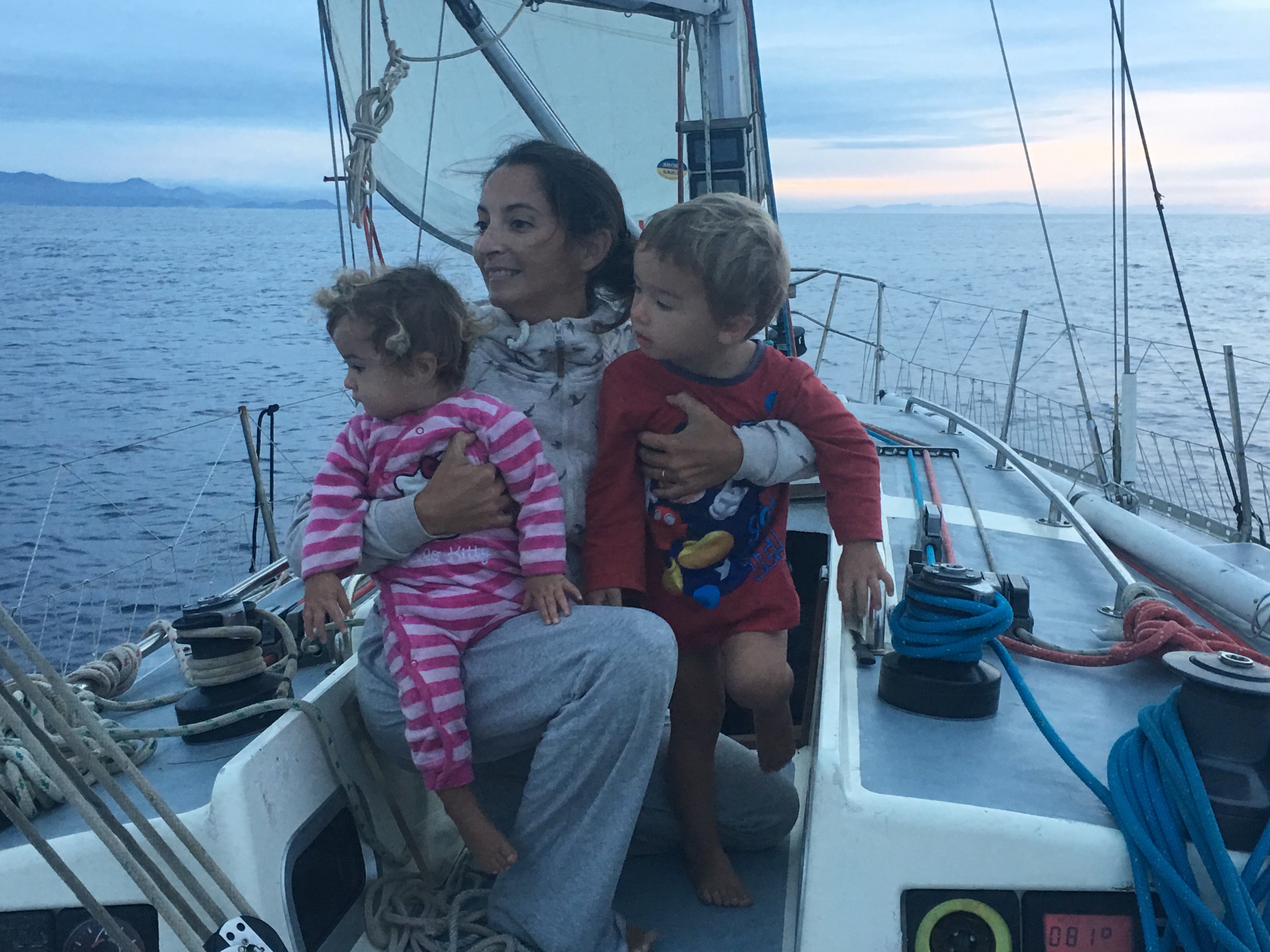 Lena our friend, was kind and volunteered to come with us for our first sail witch made my nerves at ease. As it was going to be our real first passage with the kids and we still have this issue that we don’t have an auto pilot… :/