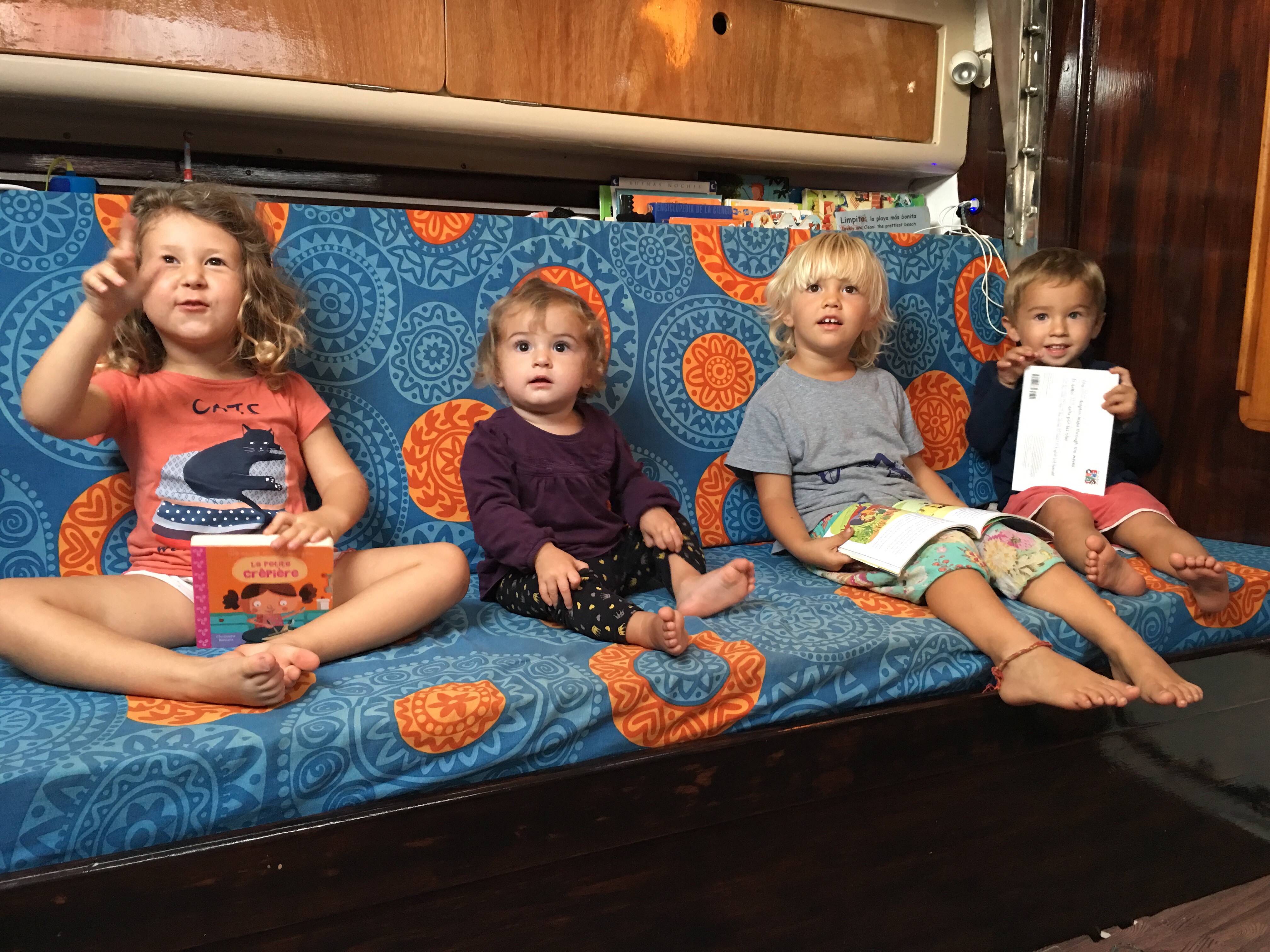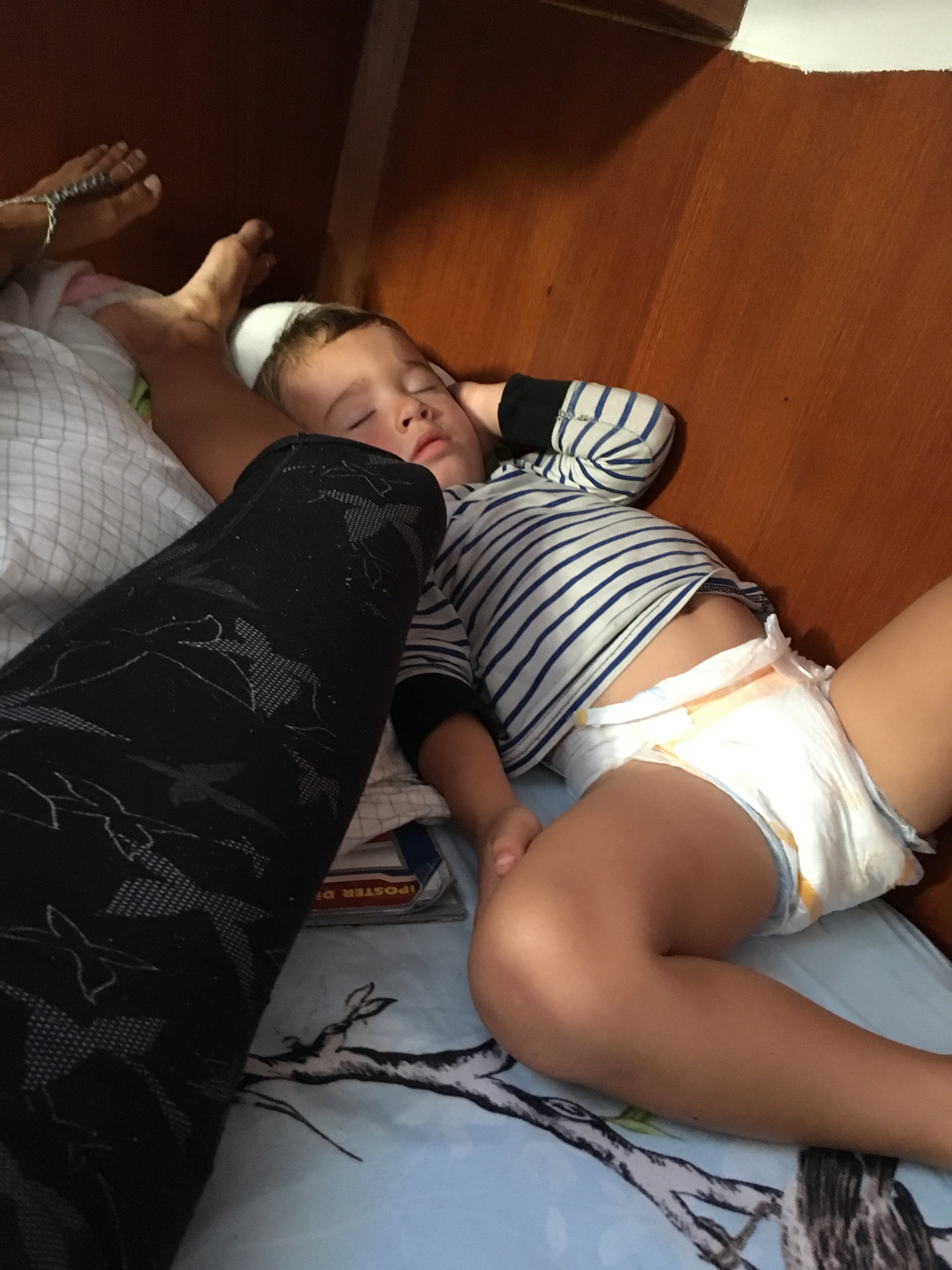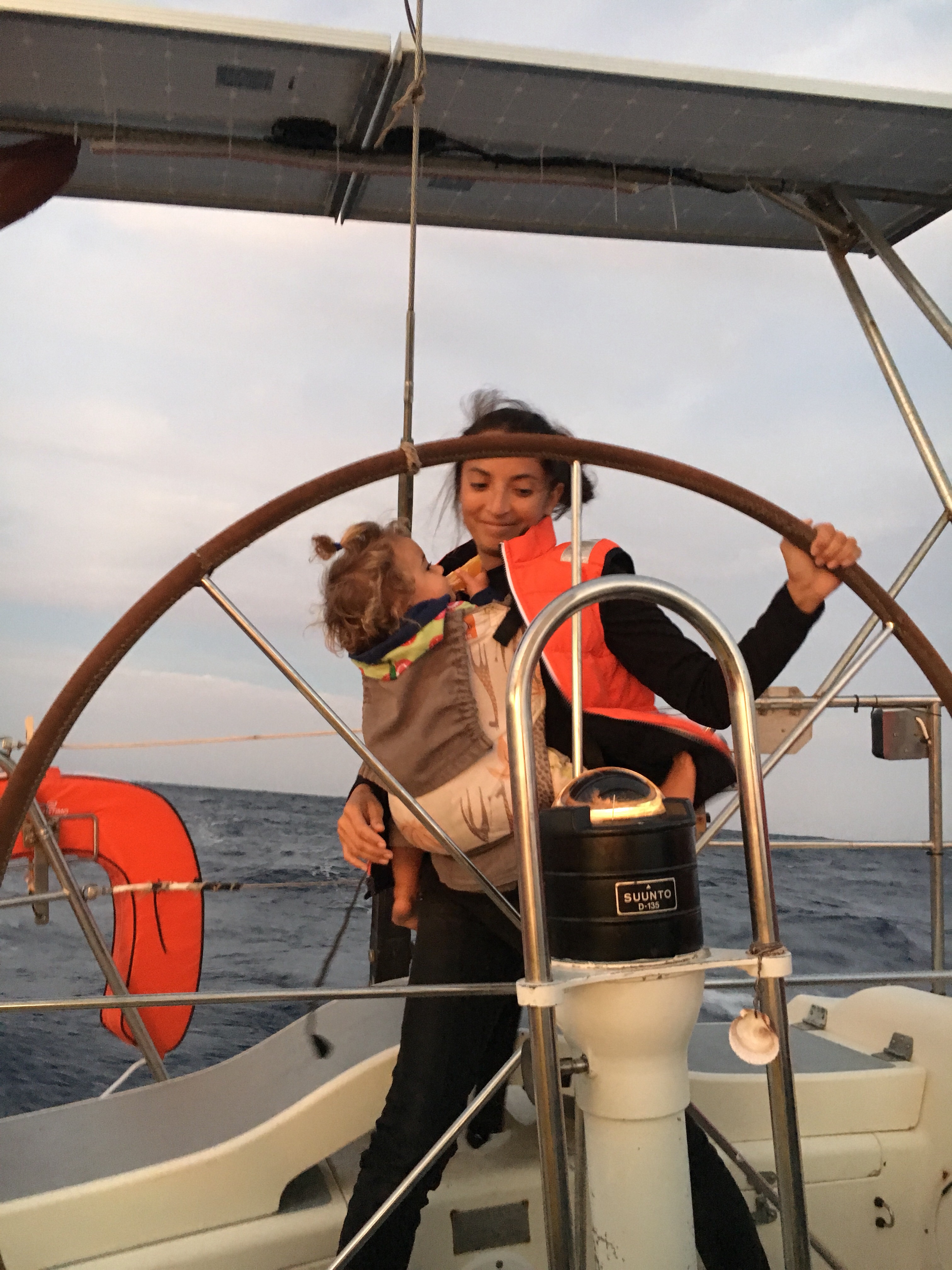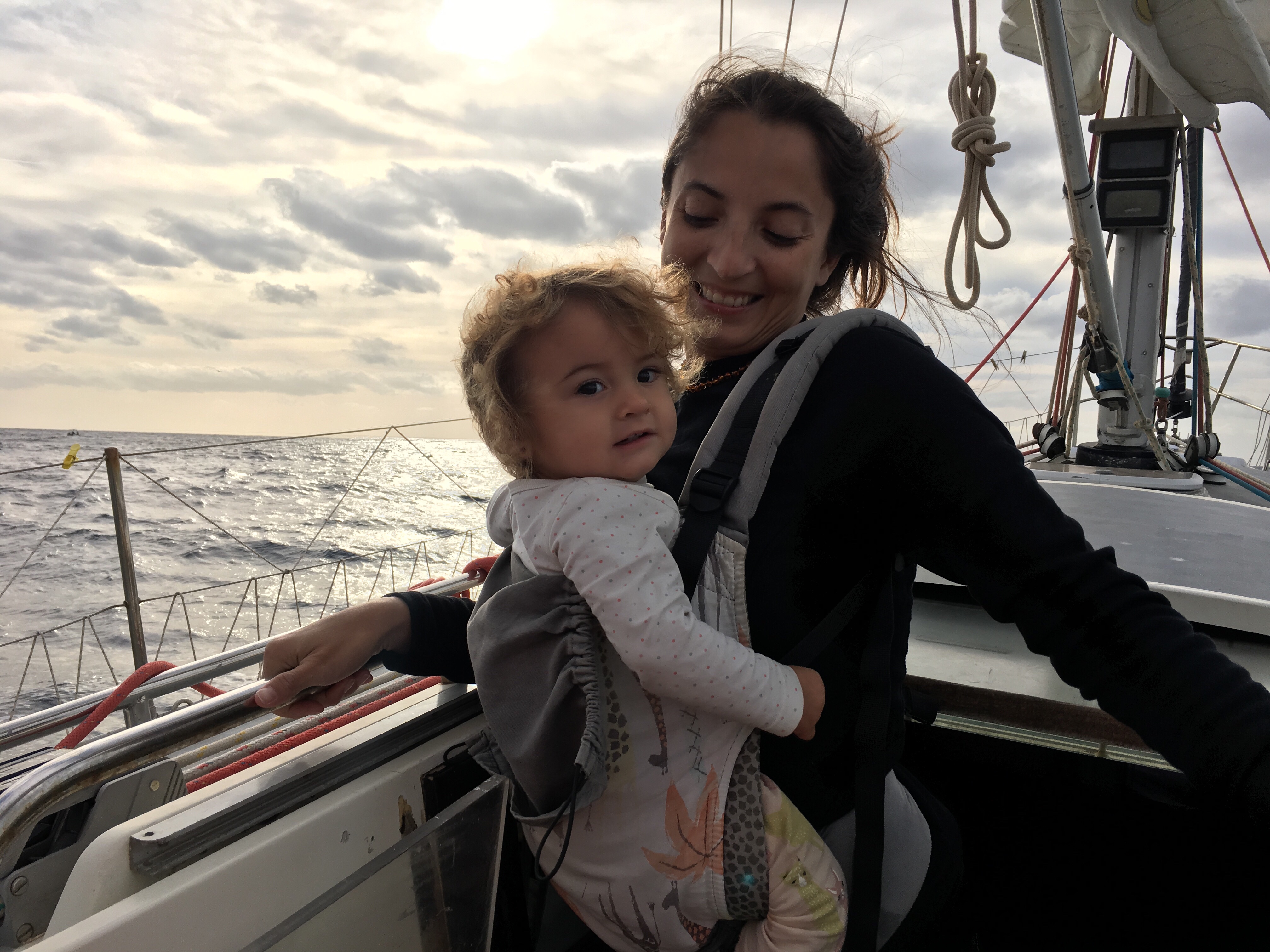 Sara was also not feeling good, and I was having a hard time taking care of both kids. Little Alizé was falling around as the boat was moving in a funny way.