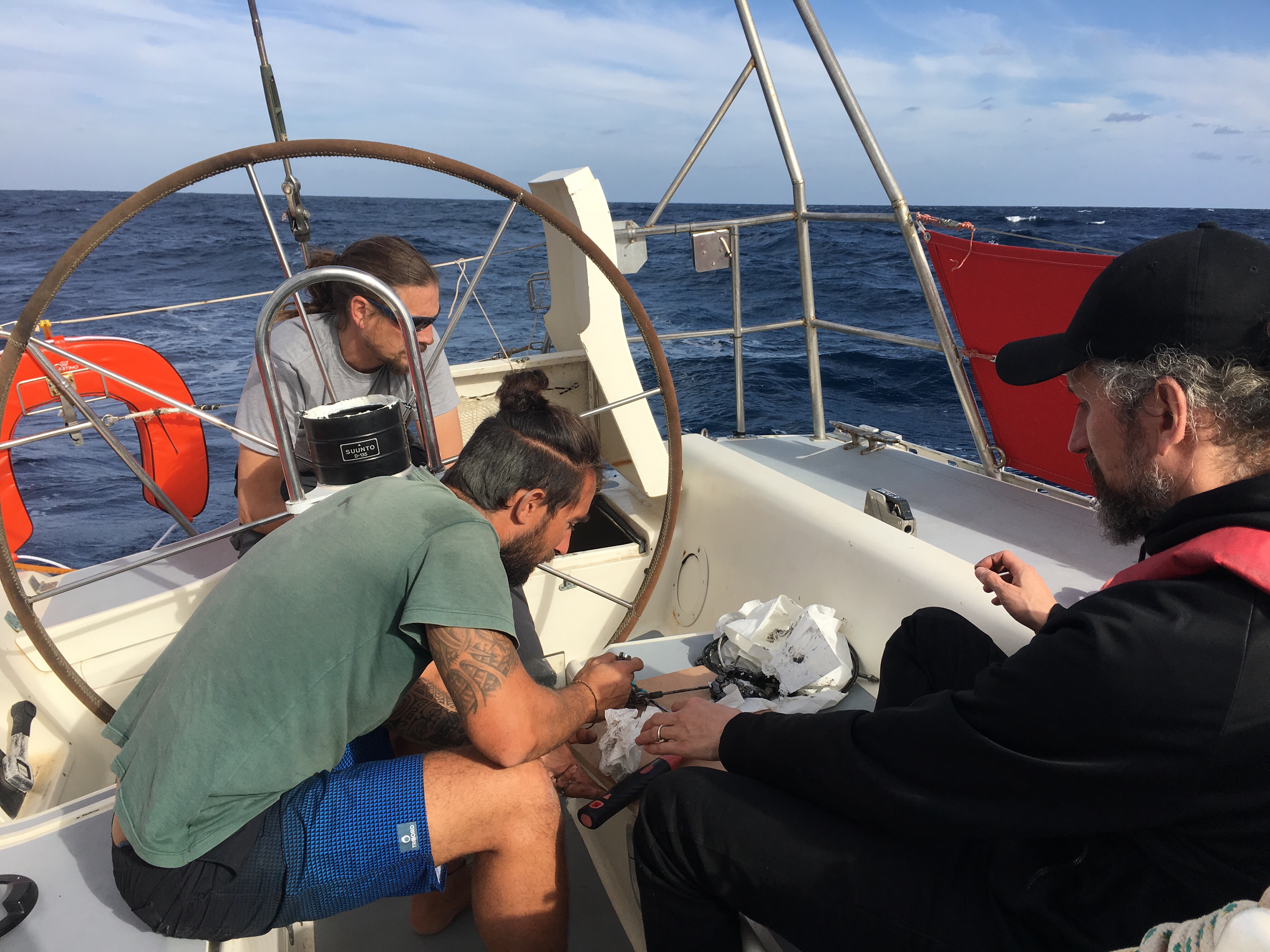 Then after some hours out, the steering stoped working!!! Something had snapped! Markus was fast outside and I called Ben to go out to help! Find the emergency tiller to steer and try to figure out what went wrong.